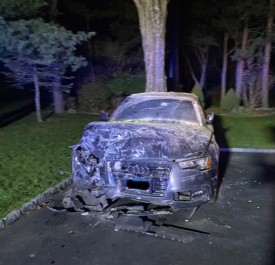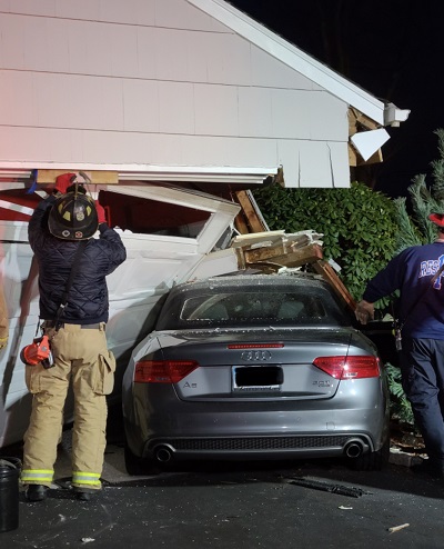 STAMFORD, CT (November 29, 2020) – At 4:40 PM, Stamford firefighters were dispatched to a report of a vehicle that had collided into a house on Lynam Road in North Stamford. 2 Engine Companies, Rescue Company 1 and the Shift Commander responded, bringing a total of 14 fire personnel to the scene.