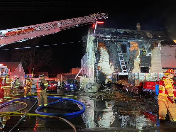 Firefighters from Stamford Fire Department Engine Co. 3 and Truck Co. 3 arrived on scene in less than two minutes and found a large volume of fire visible throughout the front of the structure. The fire was also extending to the roof line and attic areas of the multi-family house.