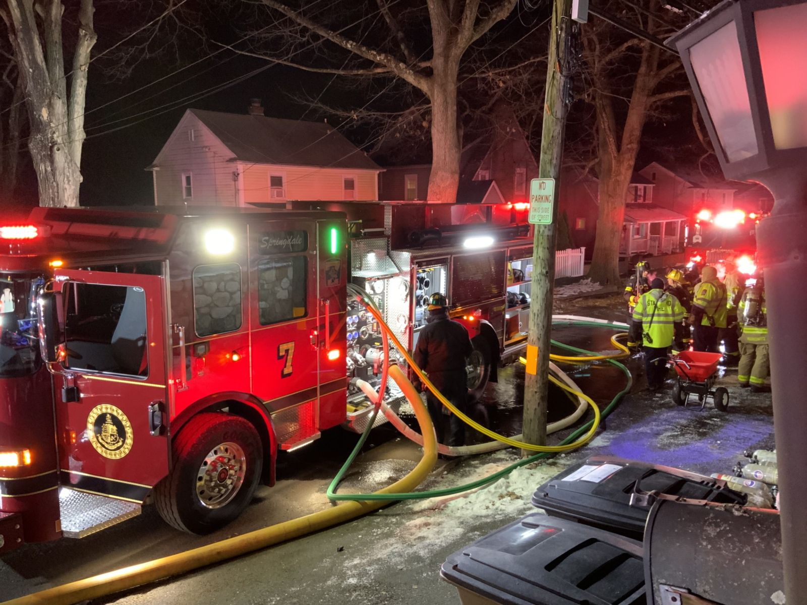 Engine 7, operating out of the Springdale Fire Station, arrived first and reported smoke conditions in the area, though the source was not immediately obvious. Upon entering the two and one half story residence, firefighters confirmed an active fire within the structure. Crews stretched a 1-3/4″ inch hose line to the second floor, where they encountered heavy smoke conditions. As the line was advanced to the third floor, firefighters faced high heat with limited ventilation options.