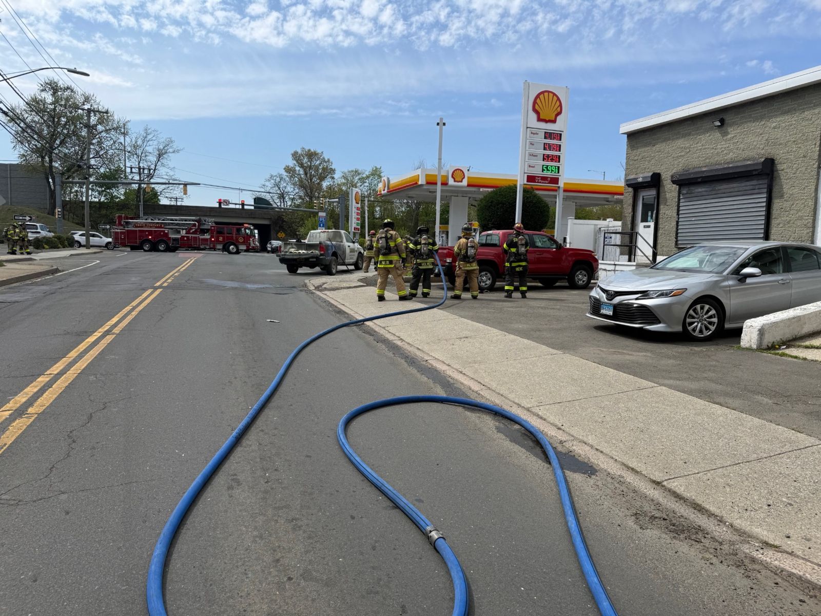 [Stamford, Connecticut] – At approximately 10:38 AM on Friday, April 23, 2026, Stamford firefighters responded to a report of a truck fire at the gas station located at 243 West Avenue. Upon arrival, firefighters found a contractor’s pickup truck with a fire in the rear bed that had been extinguished. Further investigation found that the fire involved two acetylene cylinders, which were now leaking gas. Several additional propane and nitrogen cylinders were stored in the truck’s bed.